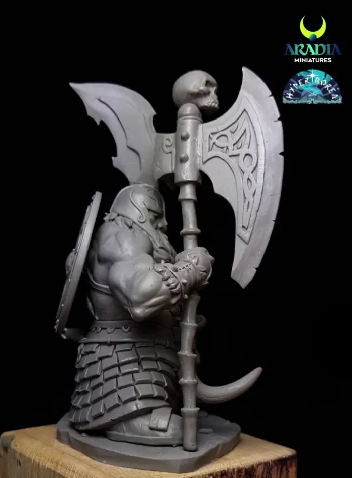 A 75 mm dwarf hero resin figure made for display painting, with clean edges and plenty of storytelling detail.