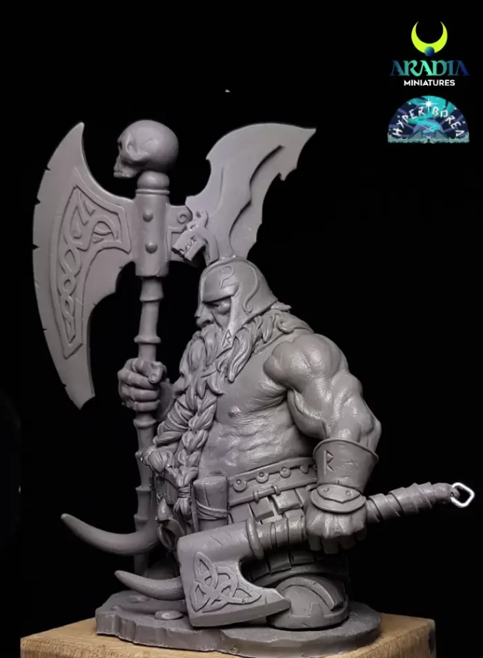 Nöri Dvergar, the Dragon Slayer is a premium 75 mm resin figure designed for collectors and painters.